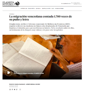 Douglas Lyon, médico y veterano cooperante de Médicos sin Fronteras (MSF), empezó a ofrecer un cuaderno en blanco a los desplazados de Venezuela que llegaban a Colombia para que escribieran su historia. Ya ha recabado miles de ellas, un testimonio de la diáspora muy valioso y de gran valor terapéutico…